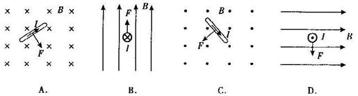 19.如图所示的各图表示通电导线的一部分在磁场中受磁场力作用的情景,其中正确的是