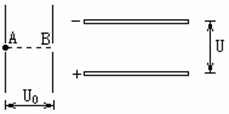 15、如图所示为两组平行板金属板,一组竖直放置,一组水平放置,今有一质量为m的电子静止在竖直放置的平行金属板的A点,经电压U0加速后通过B点进入两板间距为d、电压为U的水平放置的平行金属板间,若电子从两块水平平行板的正中间射入,且最后电子刚好能从右侧的两块平行金属板穿出,A、B分别为两块竖直板的中点,求: