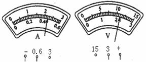 (4分)一次电学实验中,电流表、电压表的接线柱连接及示数如图所示,图中