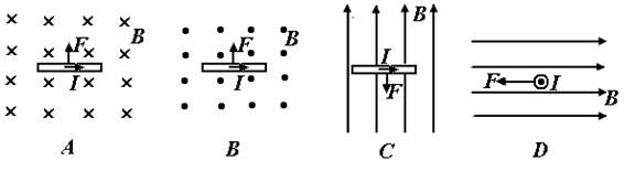 12.关于通电导线所受安培力F的方向,在下图所示的各图中正确的是 ( )