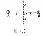 如图(1)所示,A、B为两个等量同种点电荷,a、O、b在点电荷A、B的连线上,c、O、d在连线的中垂线上Oa=Ob=Oc=Od,则( )