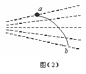 如图(2)所示,某同学在研究电子在电场中的运动时,得到了电子由a点运动到b点的轨迹(图中实线所示),图中未标明方向的一组虚线可能是电场线,也可能是等势面,则下列说法正确的判断是 ( )