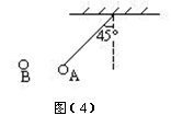 如图(4)所示,把质量为0.2克的带电小球A用丝线吊起,若将带电量为4×10-8库的小球B靠近它,当两小球在同一高度相距3cm时,丝线与竖直夹角为45°,此时小球B受到的库仑力F=