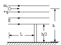 22.(12分)一质量为m,带电量为+q的小球从距地面高h处以一定初速度水平抛出。在距抛出点水平距离L处,有一根管口比小球直径略大的竖直细管。管上口距地面h/2,为使小球能无碰撞地通过管子,可在管子上方的整个区域加一个场强方向水平向左的匀强电场,如图所示,求: