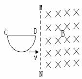 如图所示,一导线弯成半径为a的半圆形闭合回路。虚线MN右侧有磁感应强度为B的匀强磁场。方向垂直于回路所在的平面。回路以速度v向右匀速进入磁场,直径CD始络与MN垂直。从D点到达边界开始到C点进入磁场为止,下列结论正确的是( )
