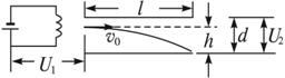 解析:电子经U1加速后,设以v0的速度垂直进入偏转电场,由动能定理得:
