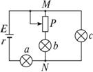 7.如图14-6-14所示,a、b、c三盏灯都能发光,且在电路变化时,灯不至于烧坏.试判断:当滑动变阻器的触头P向上移动时,3盏灯亮度的变化情况为( )
