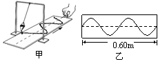图甲是利用沙摆演示简谐运动图象的装置。当盛沙的漏斗下面的薄木板被水平匀速拉出时,做简谐运动的漏斗漏出的沙,在板上显示出沙摆的振动位移随时间变化的关系曲线。已知木板被水平拉动的速度为0.20m/s,图乙所示的一段木板的长度为0.60m,则这次实验沙摆的摆长大约为(取g = π2)