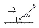 18. 如图所示,在光滑水平面上,一物体的质量为m,初速度为v1,当受到一个牵引力作用时间t后,物体的速度变为v2。已知牵引力方向与水平方向成θ角,求牵引力在时间t内的冲量。