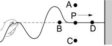 如图,一列简谐波沿绳向右传播,当波传到P点时,P将向哪一点运动( )