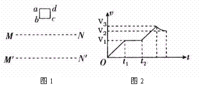 20.(12分)abcd是位于竖直平面内的正方形闭合金属线框,金属线框的质量为m,电阻为R,在金属线框的下方有一匀强磁场区,MN和M′N′是匀强磁场区域的水平边界,并与线框的bc边平行,磁场方向与线框平面垂直,现金属线框由距MN的某一高度从静止开始下落,图2是金属线框由开始下落到完全穿过匀强磁场区域瞬间的速度一时间图象,图象中坐标轴上所标出的字母均为已知量,求: