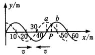 15.(16分)有两列简谐横波a、b在同一媒质中沿x轴正方向传播,波速均为v=2.5m/s。在t=0时,两列波的波峰正好在x=2.5m处重合,如图所示。