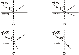 19.一束光线从折射率为1.5的玻璃内射向空气,在界面上的入射角为45°.图中四个光路图中,正确的是