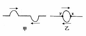 24.如图(甲)所示,两列振幅和波长都相同而传播方向相反的波,在如图(乙)所示的某一时刻,两列波“消失”,此时介质中x、y两质点的运动方向是