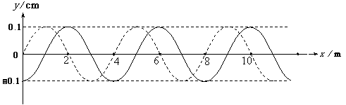 19. (11分)如图11中的实线是一列简谐波在某一时刻的波形曲线, 经0.5 s以后,其波形如图中的虚线所示,在该0.5 s内,图中质点运动的路程小于0.6 cm。
