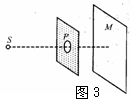 如图3所示,在挡板上开一个大小可以调节的小圆孔P,用点光源S照射小孔,小孔后面放一个光屏MN,点光源和小孔的连线垂直于光屏,并于光屏交于其中心。当小孔的直径从1.0mm逐渐减小到0.1mm的过程中,在光屏上看到的现象将会是( )