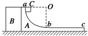 18、(13分)如图所示,质量均为M的物体A和B静止在光滑水平地面上并紧靠在一起(不粘连),A的ab部分是四分之一光滑圆弧,bc部分是粗糙的水平面.现让质量为m的小物块C(可视为质点)自a点静止释放,最终刚好能到达c点,bc长为L