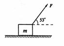 如图所示,一个质量为10kg的木箱放在水平面上,木箱与水平面间的动摩擦因数为0.5。现有一个与水平方向成53°角的拉力拉着木箱沿水平方向以4m/s速度匀速前进,求: