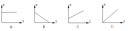 3. 一物体从t=0时刻开始做自由落体运动,它下落的速度v与时间t的关系图象是下图中的哪个 ( )
