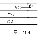 如图1-11-4所示,质量为m,带电量为q的粒子,以初速度v0,从A点竖直向上射入真空中的沿水平方向的匀强电场中,粒子通过电场中B点时,速率vB=2v0,方向与电场的方向一致,则A,B两点的电势差为:(C)