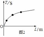 (3)为了寻找单摆周期与摆长的关系,在实验中要改变几次摆长L并测出相应的周期T,从而得出一组对应的T与L的数据,以L为横坐标,T为纵坐标得如图2所示图象。据此你猜测L与T可能有的关系是摆长L与_______________(填