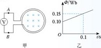 24.如图甲所示,100匝的线圈(图中只画了2匝,此线圈的总电阻为1Ω)两端A、B与一个理想电压表相连,线圈内有垂直指向纸内方向的磁场,线圈中的磁通量随时间按图乙所示变化。
