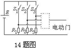 14.一个仓库有一扇电动门,门上装有三把电动锁,三个管理员各有一把锁的钥匙,只有三人同时转动自己的钥匙(闭合开关S1、S2、S3),才能把门打开。图中虚线框内符合要求的门电路为________(填“或门”、“与门”或“非门”)