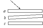 5. 如图所示,a、b、c是三块折射率不同的透明介质平板玻璃,其中a和c平行放置,且有na<nb<nc,一束单色光线由空气中以入射角i射到介质a中,当光线由介质c射到空气中时,折射角为r,则有