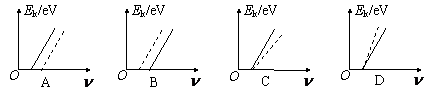 图象.已知钨的逸出功是3.28eV,锌的逸出功是3.34eV,若将二者的图线画在同一个坐标中,以实线表示钨、虚线表示锌,则下图中能正确反映这一过程的是