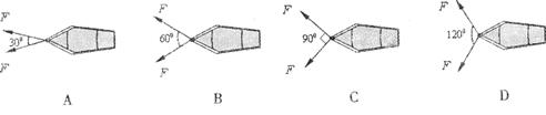 6. 如图,两人同时用大小相等的力沿不同方向拉小船,下列几种情况中,合力最大的是