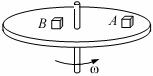 如图所示,质量相等的A、B两物块置于绕竖直轴匀速转动的水平圆盘上,两物块始终相对于圆盘静止,则两物块( )