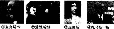 1、人们对光的本性的认识经历了漫长而曲折的过程,很多物理学家为此付出了艰辛的努力.图中四个人物,在对光的认识方面分别做出了不同的贡献.请按照历史发展的顺序将他们依次排列,其中正确的一组是 ( )