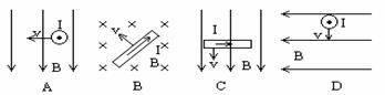 图中的四个图分别表示匀强磁场的磁感应强度B,闭合电路中一部分直导线的运动速度v和电路中产生的感应电流I的相互关系,其中正确是( )