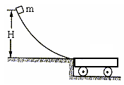 如图所示,光滑曲面轨道的水平出口跟停在光滑水平面上的平板小车上表面相平,质量为m的小滑块从光滑轨道上某处由静止开始滑下并滑上小车,使得小车在光滑水平面上滑动。已知小滑块从高为H的位置由静止开始滑下,最终停到小车上。若小车的质量为M。g表示重力加速度,求: