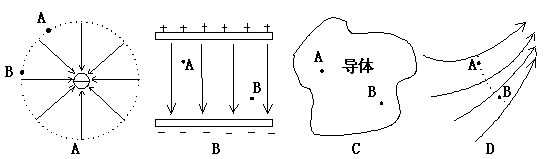 5.如图所示的各电场中,A、B两点场强和电势都相同的是( )
