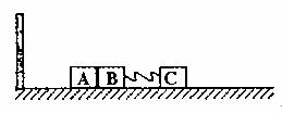 29、(14分)如图所示,在足够长的光滑水平轨道上静止三个小木块A、B、C,质量分别为mA=1kg,mB=1kg,mC=2kg,其中B与C用一个轻弹簧固定连接,开始时整个装置处于静止状态;A和B之间有少许塑胶炸药,A的左边有一个弹性挡板(小木块和弹性挡板碰撞过程没有能量损失)。现在引爆塑胶炸药,若炸药爆炸产生的能量有E=9J转化为A和B沿轨道方向的动能,A和B分开后,A恰好在BC之间的弹簧第一次恢复到原长时追上B,并且在碰撞后和B粘到一起。求: