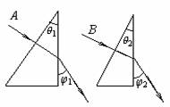 1(原创)、如图所示,两个同种玻璃制成的棱镜,顶角θ1 略大于θ2 ,两单色光A和B分别垂直入射三棱镜,其出射光线与第二界面的夹角φ1 =φ2,则下列说法不正确的是( )