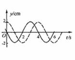一列简谐机械横波在x轴上传播,在距离小于一个波长的x=0与x=2m处的两质点的振动图线分别如图中实线与虚线所示。由此可以得出( )