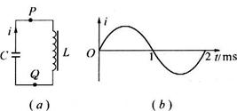 在右图所示的LC振荡电路中,通过P点的电流随时间变化的图线如图(b)所示,若把通过P点向右的电流规定为i轴的正方向,则( )