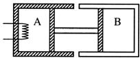 如图,绝热气缸A与导热气缸B均固定于地面,由刚性杆连接的绝热活塞与两气缸间均无摩擦。两气缸内装有处于平衡状态的理想气体,开始时体积均为