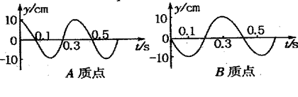 在某介质中形成一列简谐横波,该横波上有相距4m的A、B两点,下图所示为A、B两质点的振动图象,若这列波的波长大于2m,求:这列波的波速。