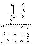 20.如图所示,相距为d的两水平虚线p1、p2表示方向垂直纸面向里的匀强磁场的上下边界,磁场的磁感应强度为B。正方形线框abcd的边长为L(L<d)、质量为m、电阻为R,线框处在磁场正上方,ab边与虚线p1相距h。线框由静止释放,下落过程中线框平面始终在竖直平面内, 线框的ab边刚进人磁场时的速度和ab边刚离开磁场时的速度相同。在线框从进入到全部穿过磁场的过程中,下列说法正确的是