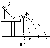 (2)用半径相同的小球1和小球2的碰撞验证动量守恒定律,实验装置如图8所示,斜槽与水平槽圆滑连接。安装好实验装置,在地上铺一张白纸,白纸上铺放复写纸,记下重锤线所指的位置O。接下来的实验步骤如下: