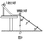 ④完成上述实验后,某实验小组对上述装置进行了改造,如图9所示。在水平槽末端与水平地面间放置了一个斜面,斜面的顶点与水平槽等高且无缝连接。使小球1仍从斜槽上A点由静止滚下,重复实验步骤1和2的操作,得到两球落在斜面上的平均落点M′、P′、N′。用刻度尺测量斜面顶点到M′、P′、N′三点的距离分别为l1、l2、l3。则验证两球碰撞过程中动量守恒的表达式为