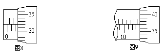 ②将测量头的分划板中心刻线与某条亮纹中心对齐,将该亮纹定为第1条亮纹,此时手轮上的示数如图8所示。然后同方向转动测量头,使分划板中心刻线与第6条亮纹中心对齐,手轮上的示数如图9所示,则相邻亮纹的间距Δx为__________mm。