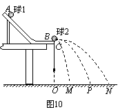 (2)用半径相同的小球1和小球2的碰撞验证动量守恒定律,实验装置如图10所示,斜槽与水平槽圆滑连接。安装好实验装置,在地上铺一张白纸,白纸上铺放复写纸,记下重锤线所指的位置O。接下来的实验步骤如下: