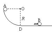 接,质量为m2的小球B静止光滑水平轨道上,其左侧连接了一轻质弹簧,质量为m1的小球A自圆弧轨道的顶端由静止释放,重力加速度为g,试求:
