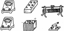 13.图示的器材中,一部分是将电流表改装为伏特表所需的,其余是为了把改装成的伏特表跟标准伏特表进行校对所需的.首先在下面方框中画出改装和校对都包括在内的电路图(要求对量程内所有刻度都能在实验中进行校对);然后在实物图中画出连线,将所示器材按以上要求连 成实验电路。
