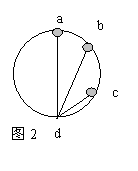 6、如图2所示,ad、bd、 cd是竖直面内的三根固定的光滑细杆,a、b、c、d位于同一圆周上,a点为圆周上最高点,d点为圆周上最低点。每根杆上都套有一个小圆环,三个圆环分别从a、b、c处由静止释放,用t1 、t2 、t3依次表示各环到达d点所用的时间,则( )