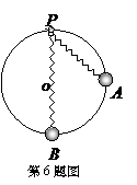 如图所示,劲度系数为K的轻质弹簧,一端系在竖直放置的半径为R的圆环顶点P,另一端系一质量为m的小球,小球穿在圆环上作无摩擦的运动。设开始时小球置于A点,弹簧处于自然状态,当小球运动到最底点时速率为